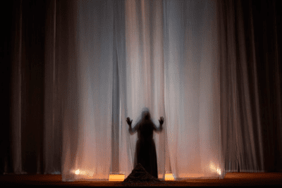 Dins una tempesta de boira, Poncia, la criada de Bernarda Alba, resa per la mort d’Adela. La casa s’ha sumit en un mar de silenci. Poncia parla sola i també amb elles, amb Bernarda Alba i les seves filles, en un lloc prohibit per a les paraules.